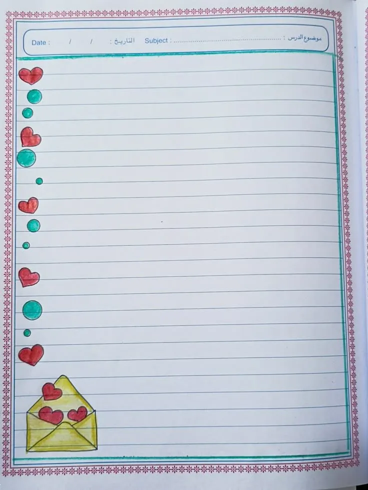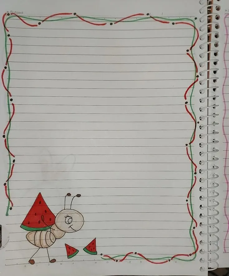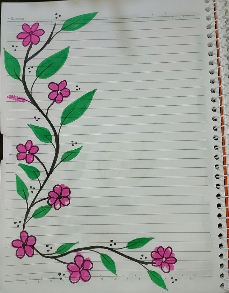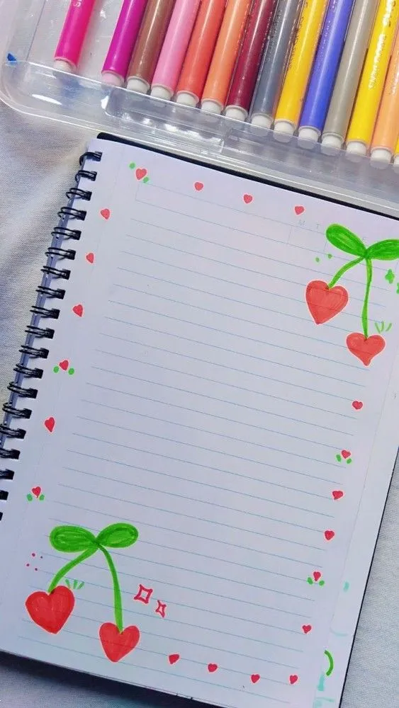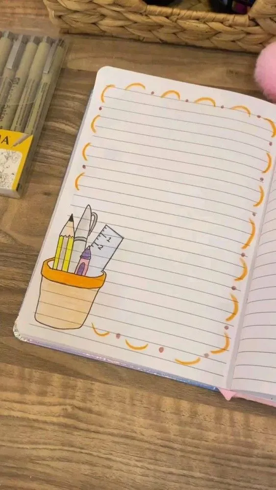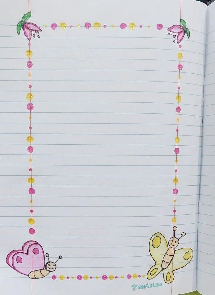 با ماژیک یا خودکارهای رنگی، میتوان حاشیههایی با طرح گل، نقطهچین، خطوط موجدار یا طرحهای هندسی کشید. این حاشیهها علاوه بر نظمدهی، جذابیت بصری ایجاد میکنند.
