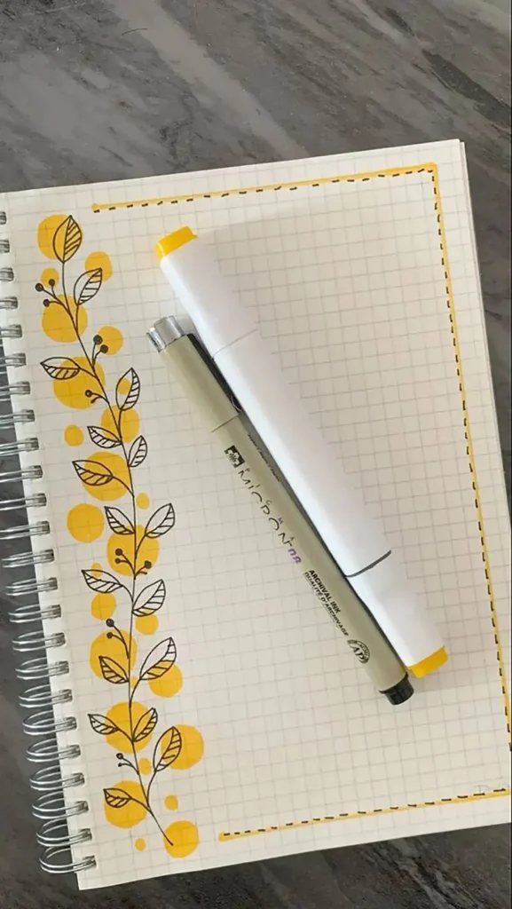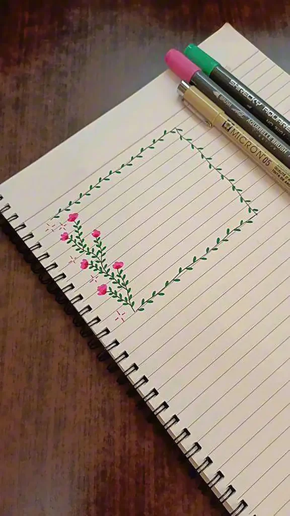 طرحهای برگ، گلهای کوچک، پرندگان یا حتی ابر و ماه میتوانند حاشیههای زیبایی ایجاد کنند. این عناصر به راحتی کشیده میشوند و به صفحات دفتر شما جلوهای طبیعی و تازه میبخشند.