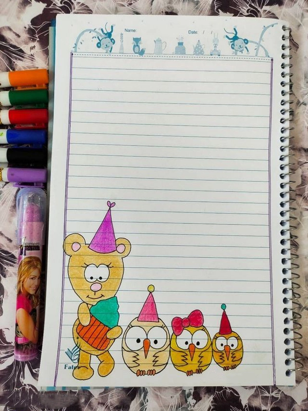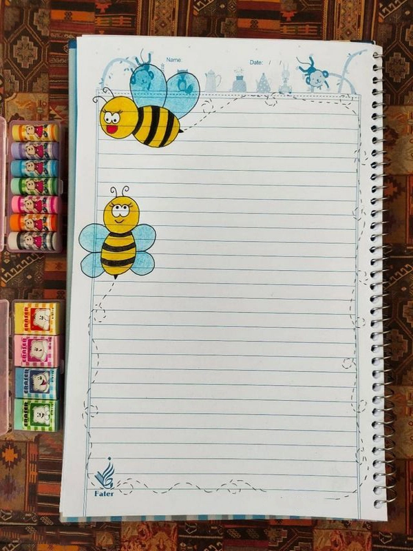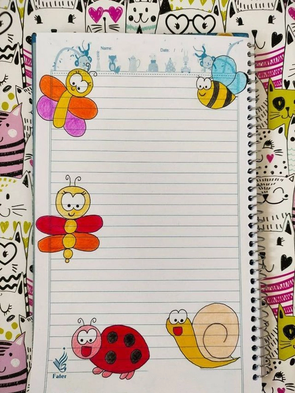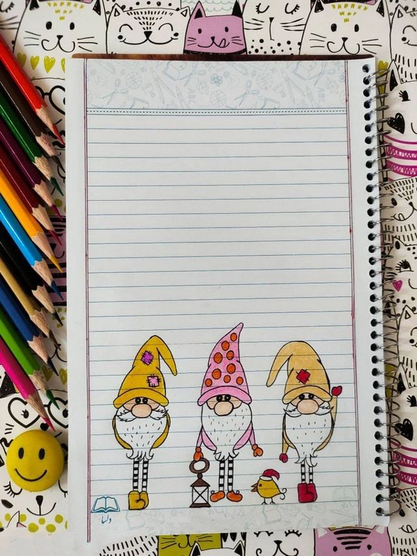 خلاقیت در حاشیه دفتر خفن حد و مرزی ندارد! میتوانید از مواد مختلف مانند واترکالر، اکریلیک، برگههای طلاکوب یا حتی پارچه برای تزئین حاشیه دفتر استفاده کنید.