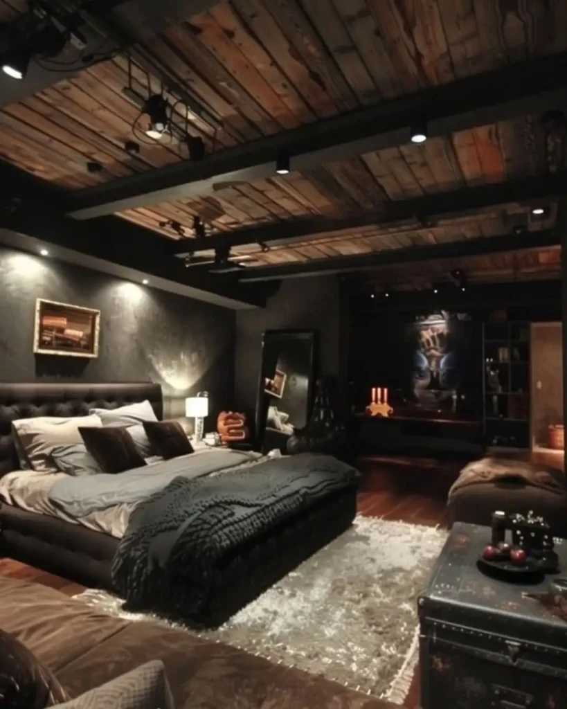 این سبک تماماً روی «مود» سوار شده. دیوارهای تیره، نورپردازی لایهای، کف چوبی گرم و چراغهای صنعتی، یک حس سینمایی میسازه. انگار شبِ شهر پشت پنجره است و داخل اتاق همهچیز آرام و مرموز.