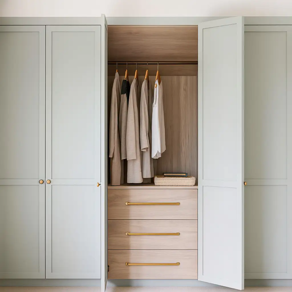گاهی بهترین کمد آن است که دیده نشود؛ کارش را انجام بدهد، به روال زندگی کمک کند و اجازه بدهد بقیهی اتاق بدرخشد. آرام، کاربردی و مرتب.