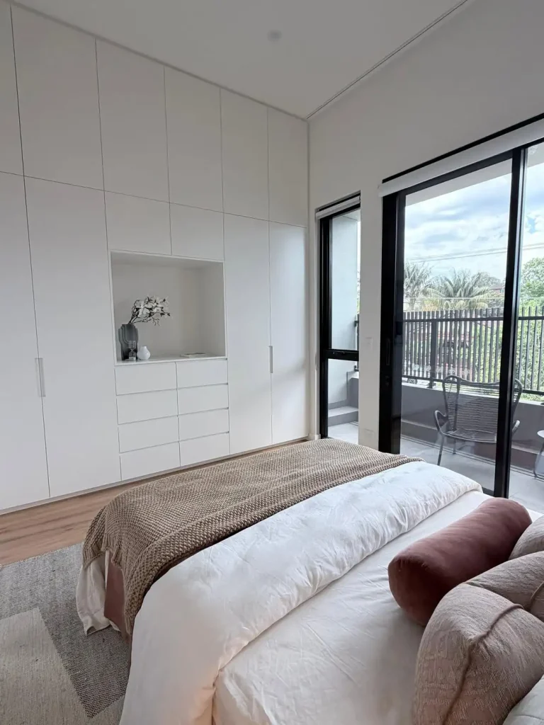 حس سوئیت هتلهای خوب را دارد؛ خنثی، متعادل و دقیق. این طراحی نشان میدهد کمد میتواند فضا را قاب بگیرد، نه اینکه بر اتاق غالب شود.