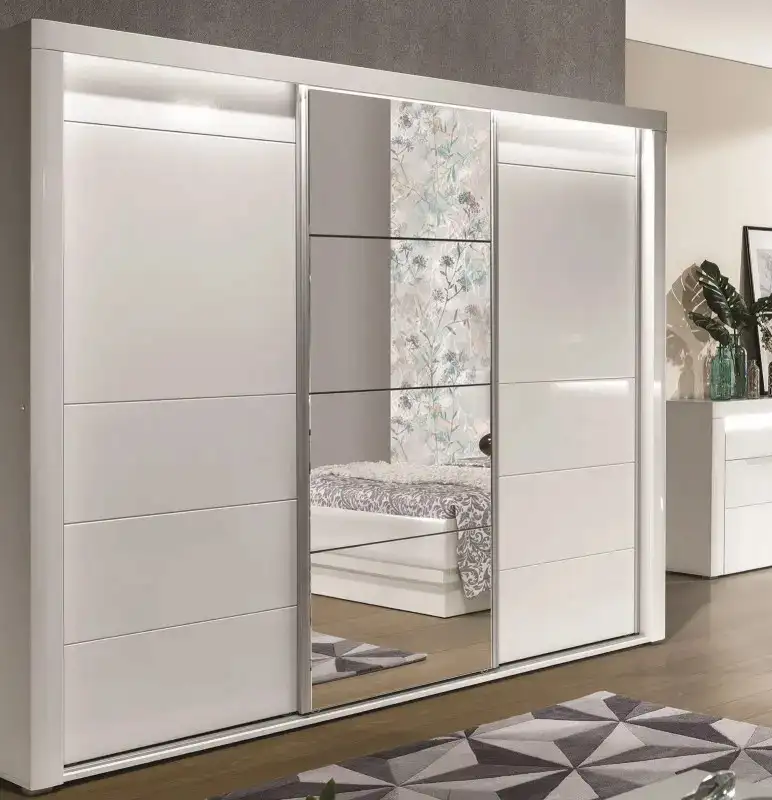 این کمد یک حس سینمایی داره: پنلهای سفیدِ لاکی کمی برق میزنن، و آینه وسط نور رو توی اتاق میچرخونه؛ نتیجه؟ اتاق هم بزرگتر دیده میشه هم شیکتر.