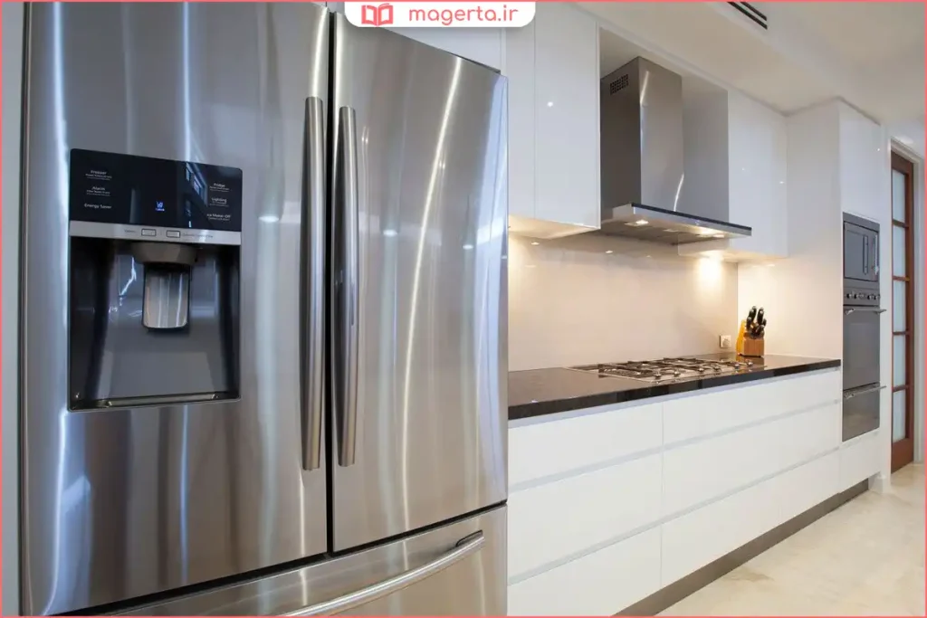 - انتخاب مدرن و شیک: یخچال استیل یا نقرهای برای دکوراسیونهای مدرن عالی است، اما آماده تمیز کردن مداوم آن باشید.