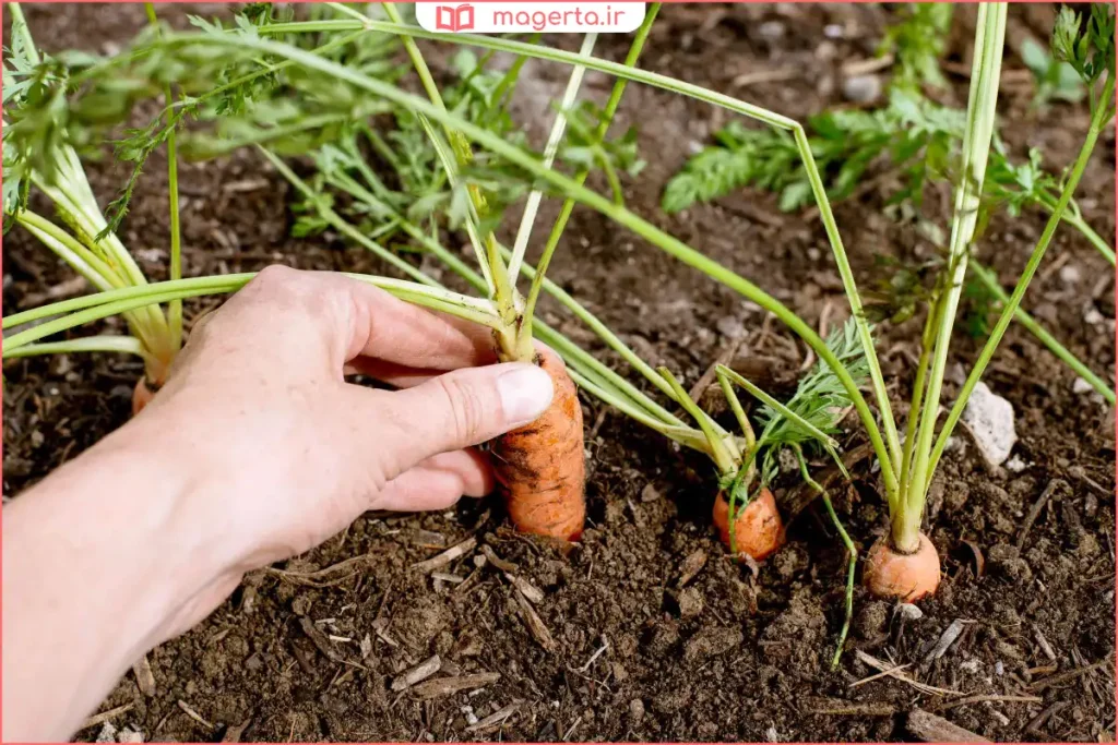 اگر برداشت را خیلی عقب بیندازید، ممکن است بافت ریشه چوبیتر شود یا در گرمای بالا کیفیت افت کند. در کشت پاییزه و زمستانه، معمولاً کیفیت طعم بهتر است و هویجها بافت لطیفتر و شیرینی بیشتری پیدا میکنند، به شرطی که یخزدگی شدید و طولانی نداشته باشید.