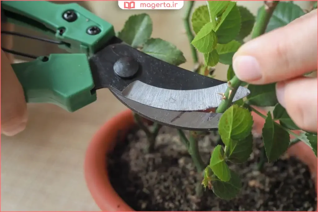 حذف جوانههای رقیب: جوانههایی که ممکن است در زیر محل پیوند روی پایه رشد کنند را حذف کنید تا تمام انرژی گیاه به سمت جوانه پیوندی هدایت شود.