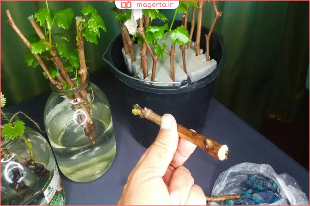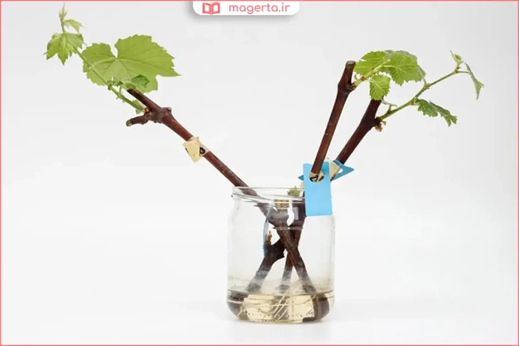 تکثیر در آب: تکثیر انگور در آب نیز امکان‌پذیر است، اما روش کاشت مستقیم در خاک معمولاً قوی‌تر و بادوام‌تر است.