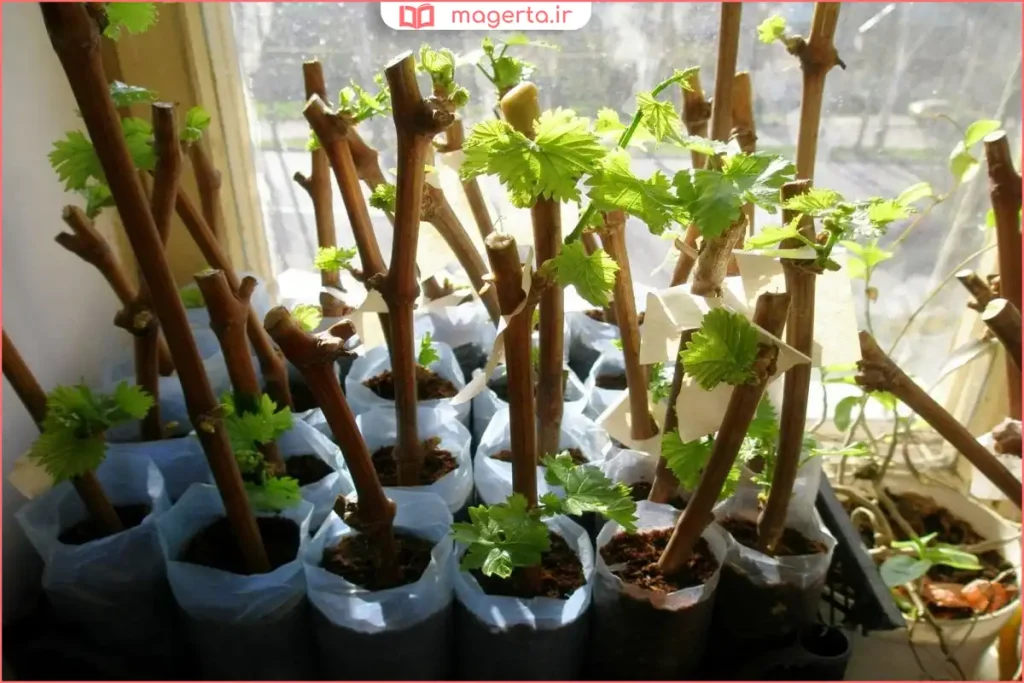 فرآیند قلمه زدن انگور شامل مراحل زیر است: