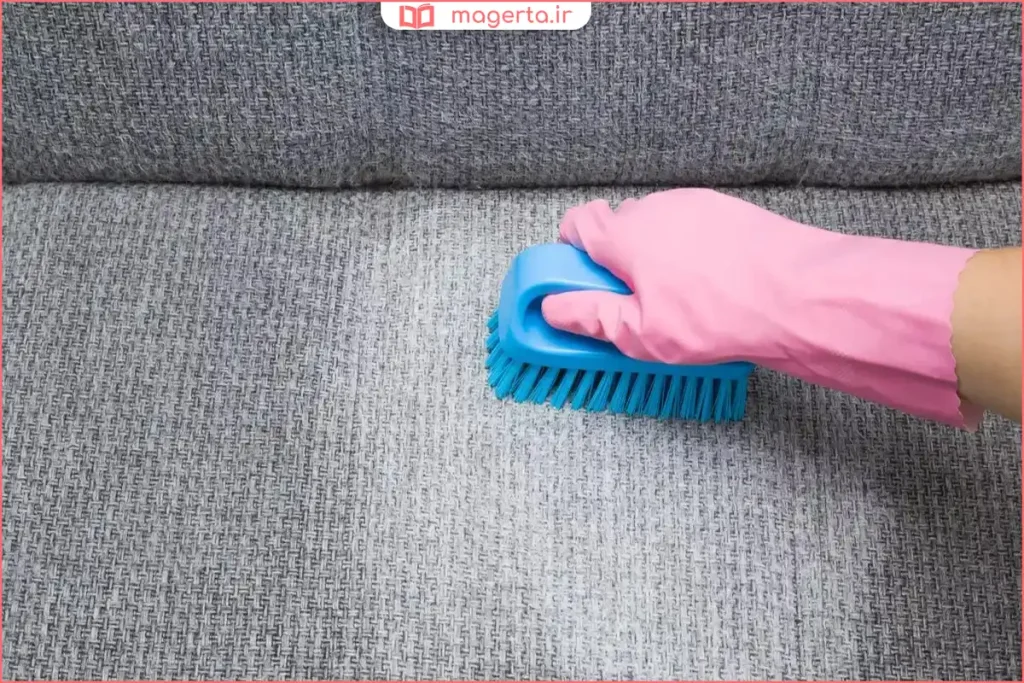 اگر روی مبل لکههای خشکشده مثل خرده نان، خاک خشک یا گل وجود دارد، با یک برس نرم یا دستمال خشک آن را خیلی آرام جدا کنید تا در حین شستشو پخش نشود. همین مرحله ساده باعث میشود هنگام کار با شوینده، فقط با آلودگی واقعی سروکار داشته باشید، نه با تودهای از گرد و غبار که تمیزکاری را سختتر میکند.