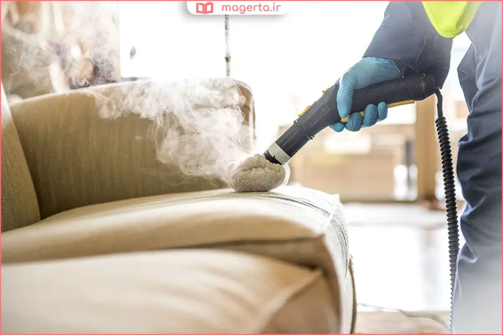 بخارشو یک روش خوب برای تمیز کردن عمیق و ضدعفونی است. ابتدا مبل را جاروبرقی بکشید. سپس با نازل بخارشوی، بخار را از فاصله نزدیک روی سطح مبل اسپری کنید و بلافاصله با یک پارچه تمیز رطوبت را جمع کنید. این کار را برای تمام قسمتها تکرار کنید. بخار داغ بسیاری از باکتریها را از بین میبرد. قبل از استفاده کامل، ابتدا بخارشو را روی یک بخش کوچک تست کنید.