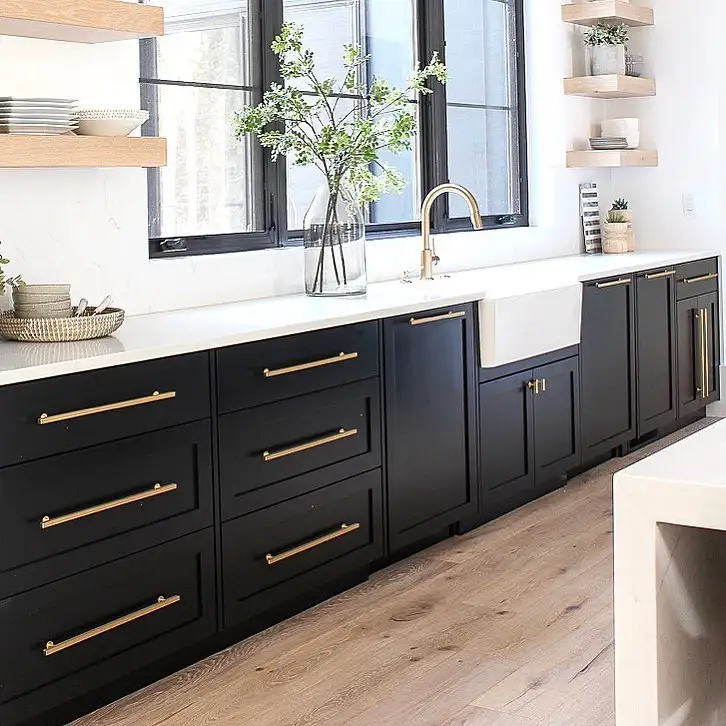 ۲) برای کابینت مشکی، یراق برنجی بهتر است یا مشکی؟