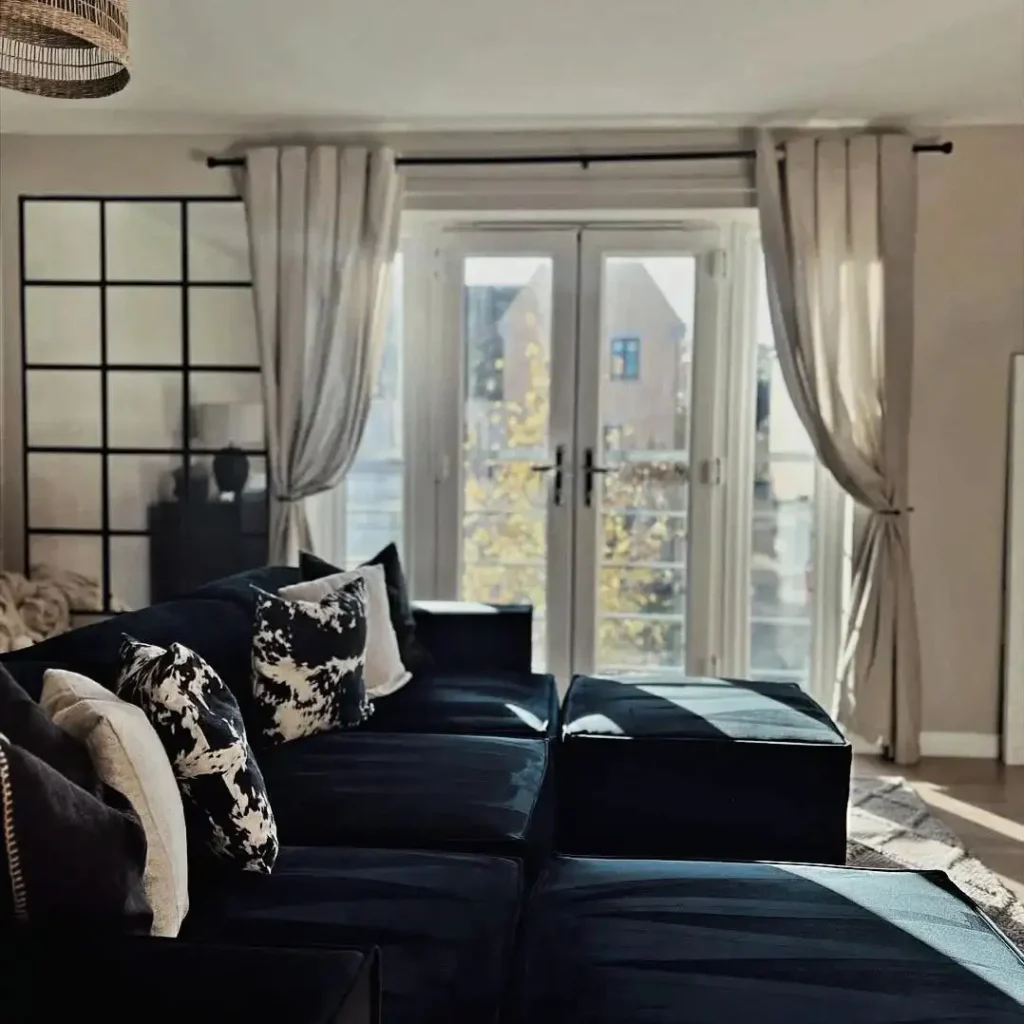 اینجا بافتها نقش اصلی رو دارن. کوسنهای لمسهدار، لایهسازی بالشها و کنتراستهای نرم کمک میکنن مبل مشکی تخت و یکنواخت دیده نشه. همهچیز همزمان هم مرتب است هم راحت.