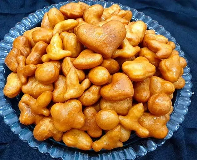 برای شکل‌دهی، می‌توانید دو روش مرسوم را انتخاب کنید: فرم گلوله‌ای یا حلقه‌ای. در روش گلوله‌ای، تکه‌هایی کوچک از خمیر را جدا کرده، در دست گرد کنید و به اندازه یک گردو یا کمی کوچک‌تر بسازید. این روش برای سرخ‌کردن یکنواخت و جذب بهتر شربت، بسیار مناسب است.