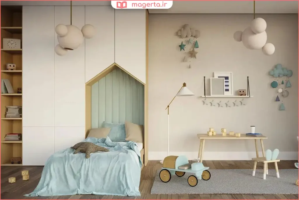 اتاق کودک را از اسباببازیهای خیلی محرک خالی و برای خواب مینیمال کنید. از پرده ضخیم یا نور برای کاهش روشنایی بیرون کمک بگیرید. چراغخواب کمنور انتخاب کنید تا ترس از تاریکی کاهش یابد، اما شدت نور آنقدر نباشد که ملاتونین را مهار کند. دمای اتاق را در محدوده خنک و راحت تنظیم کنید و لباس خواب نخی و تنفسپذیر بپوشانید. اگر صداهای مزاحم در ساختمان وجود دارد، از صدای سفید ملایم استفاده کنید تا تغییرات ناگهانی صدا پوشانده شود.