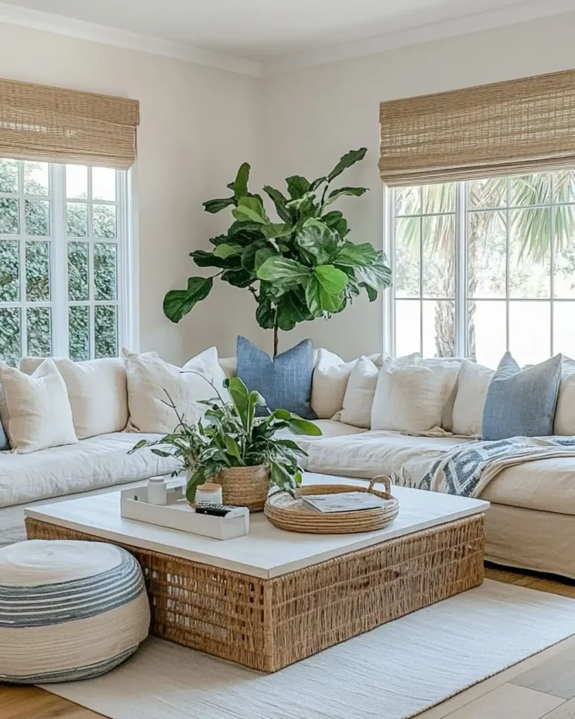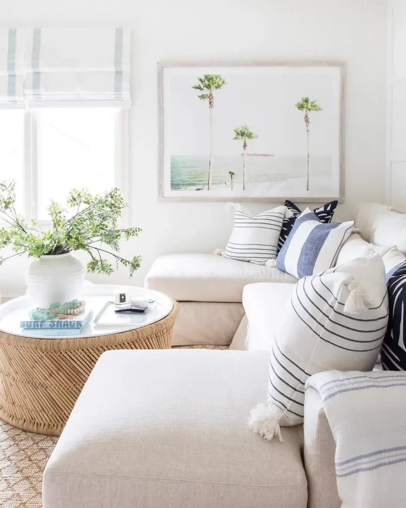 ۲۳ ایده برای دکوراسیون پذیرایی ساحلی که خونه رو روشن و خنک میکنه