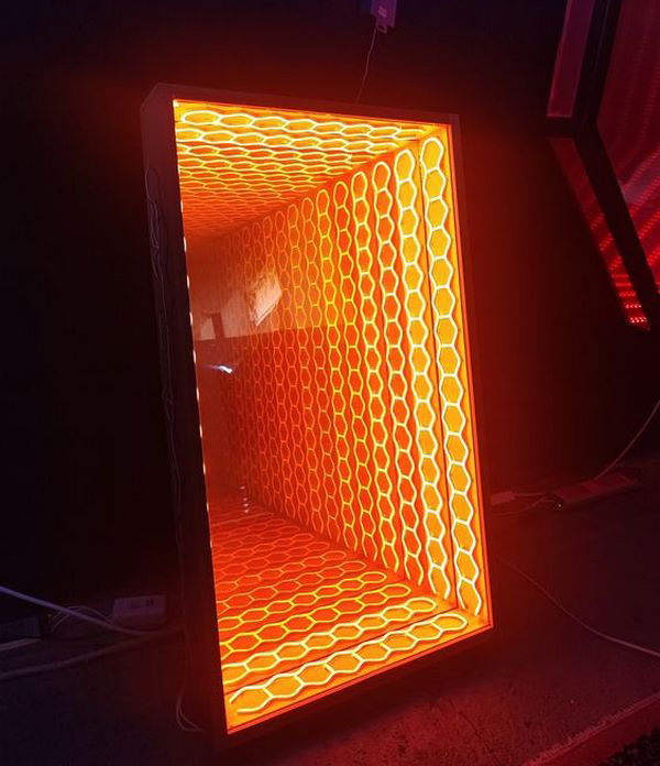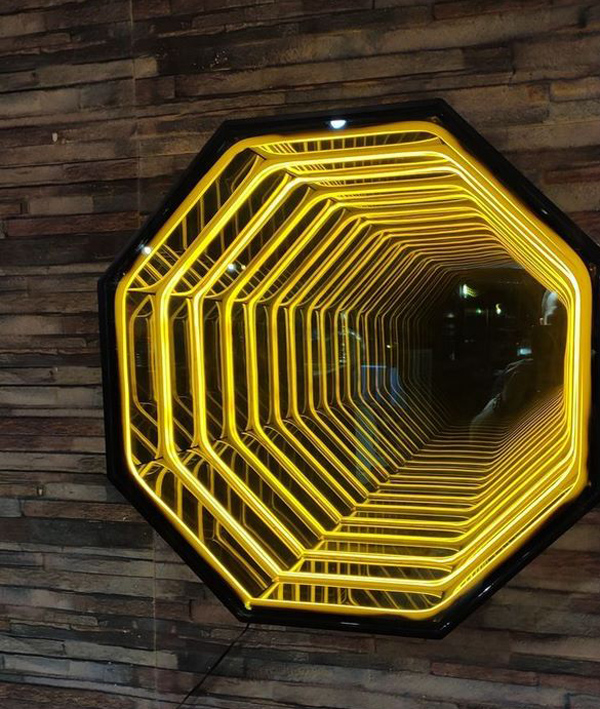 دیوار آینه بینهایت: یکی از راههای شگفتانگیز برای استفاده از آینه بینهایت، ساختن یک دیوار کامل از آینه بینهایت است. این طرح میتواند در هر فضایی از خانه مانند سالن ورودی، نمایشگاه هنری یا حمام استفاده شود. این طرح باعث ایجاد تأثیری جادویی و عمیق در فضا میشود و به آن طابع منحصر به فردی میبخشد.