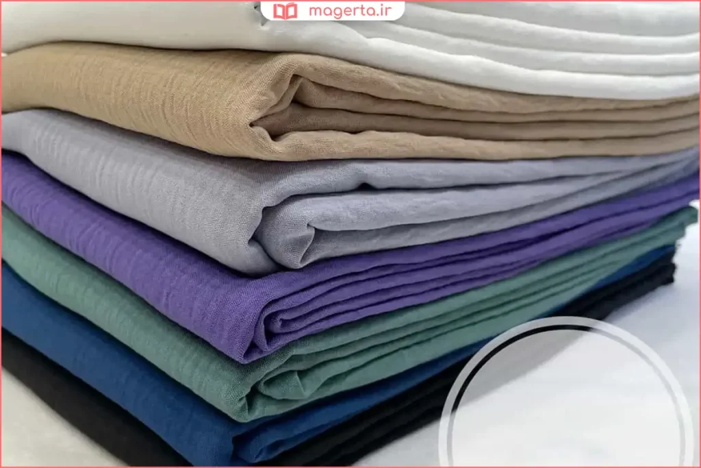 | رنگهای کلاسیک و پرکاربرد | مشکی، سرمهای، کرم، طوسی، سفید | هماهنگی آسان با سایر لباسها، ماندگاری بالای مد، مناسب برای موقعیتهای رسمی و روزمره | مانتو اداری، ستهای رسمی، استفاده اولیه برای کسانی که با این پارچه شروع میکنند |