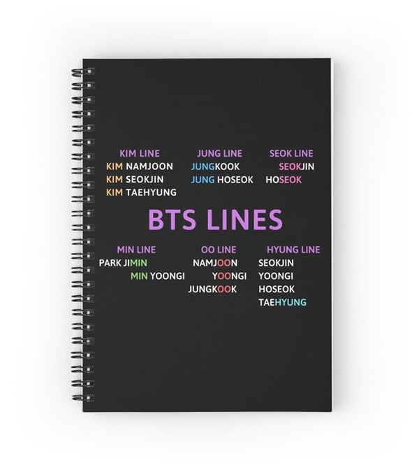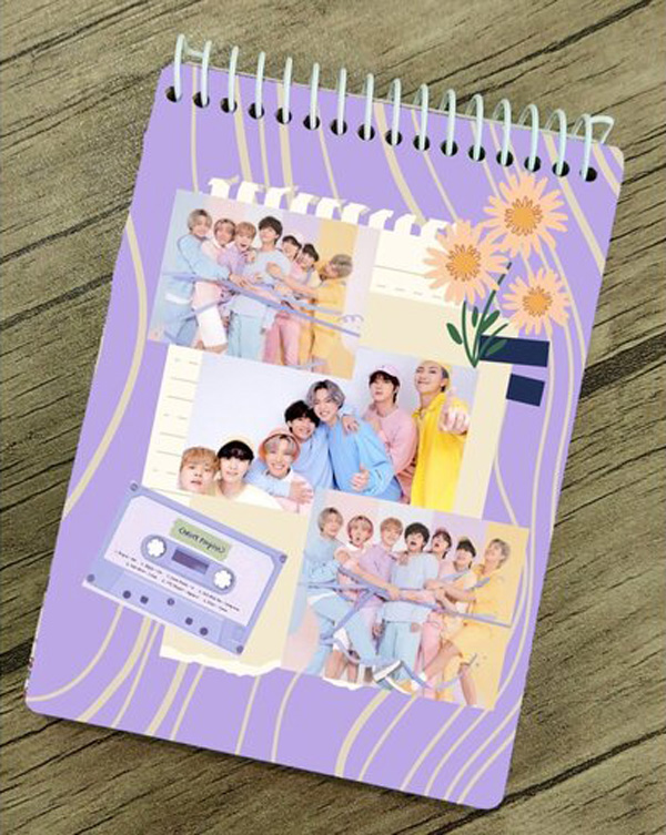 صفحات مخصوص: دفترچه یادداشت ممکن است شامل صفحاتی باشد که برای نوشتن جملات مشهور، متن‌های الهام بخش، متن‌های مرتبط با موسیقی یا متن‌های مرتبط با گروه BTS طراحی شده‌اند.