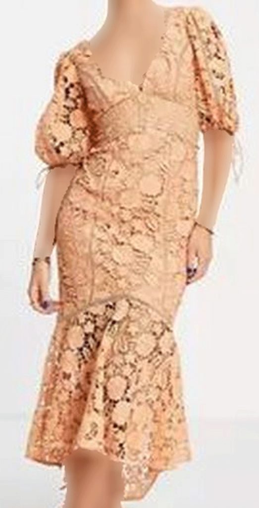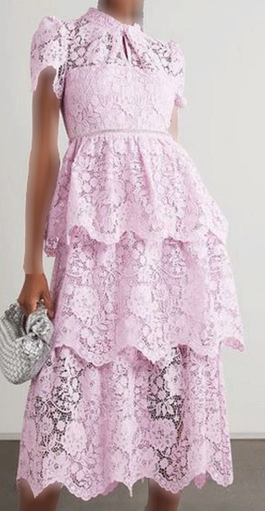 انتخاب پارچه: پیراهن میدی گیپور از پارچه گیپور بافته شده ساخته میشود که طرحهای پیچیده و با جزئیات را به خوبی نمایش میدهد.
