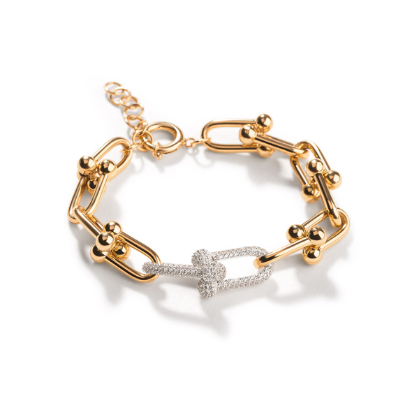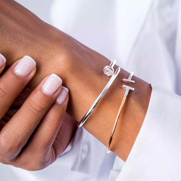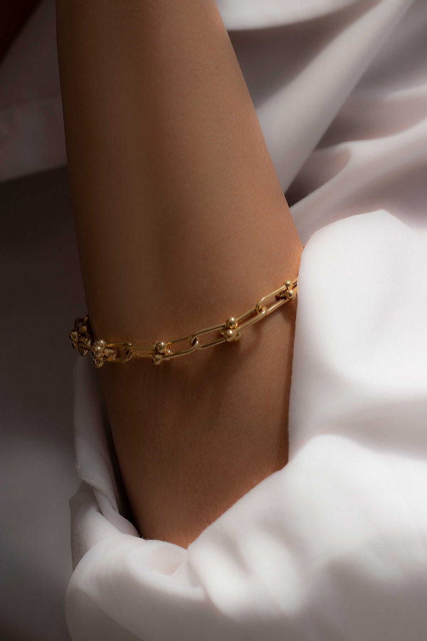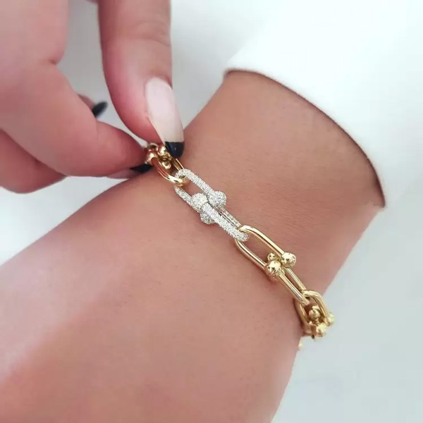 علاوه بر طراحی زنجیر، برخی از دستبندهای طرح تیفانی زنانه میتوانند دارای الماسها، مرواریدها، سنگهای قیمتی یا سایر زیورآلات باشند. این عناصر جواهری به طرح دستبند زیبایی و درخشندگی بیشتری میبخشند.