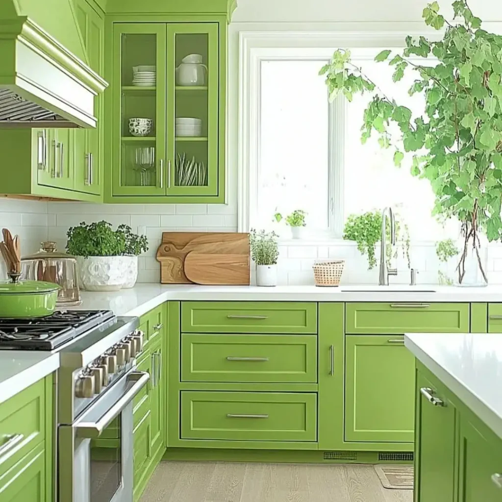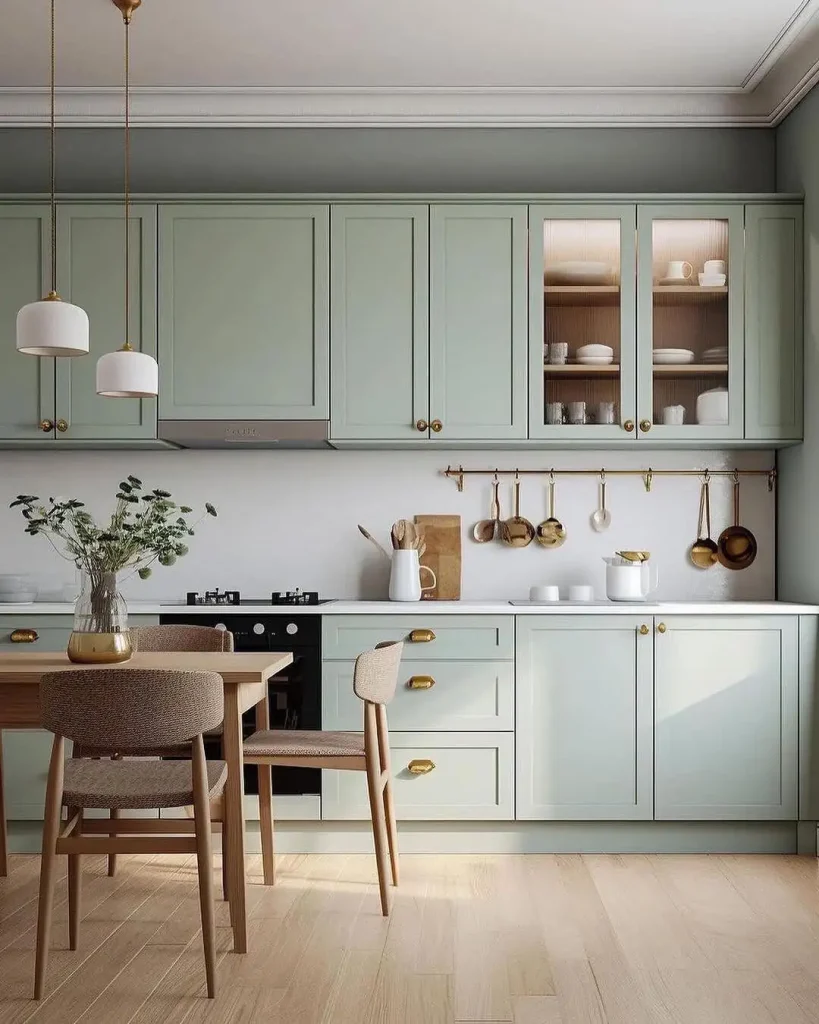 اگر بخوای جمعش کنی: سبز را با “چوب گرم”، “سنگ روشن”، “فلزات گرم مثل برنج” و “نورپردازی درست” همراه کن تا هم طبیعی دیده بشه هم سطح بالا. اینطوری آشپزخونهات هم خوشحالتر میشه، هم خاصتر.
