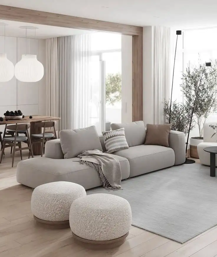 فرمهای نرم کنار خطهای تمیز: مبل با خطوط ساده، اما میتونه گوشههای گرد و نرم هم داشته باشه تا فضا مهربونتر بشه.