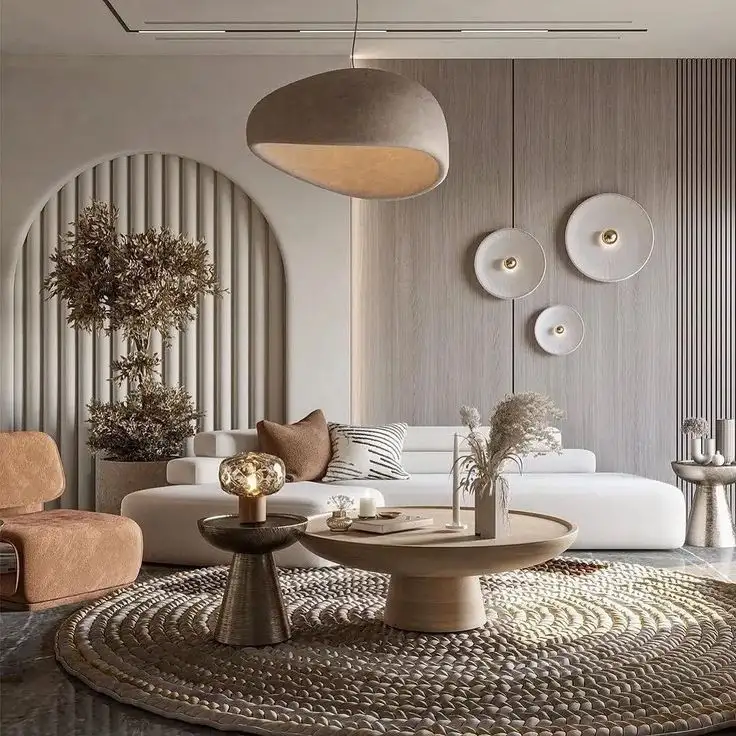 ترکیب مینیمالیسم ژاپنی (خلوت، دقیق، ساده) با گرمای اسکاندیناوی (بافتهای نرم، نور گرم، حس دنج). نتیجه: پذیرایی آروم، مرتب و مهربون.