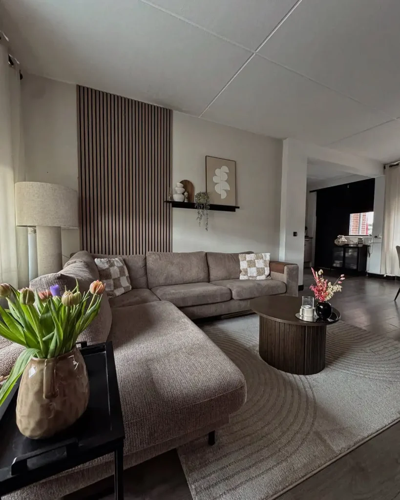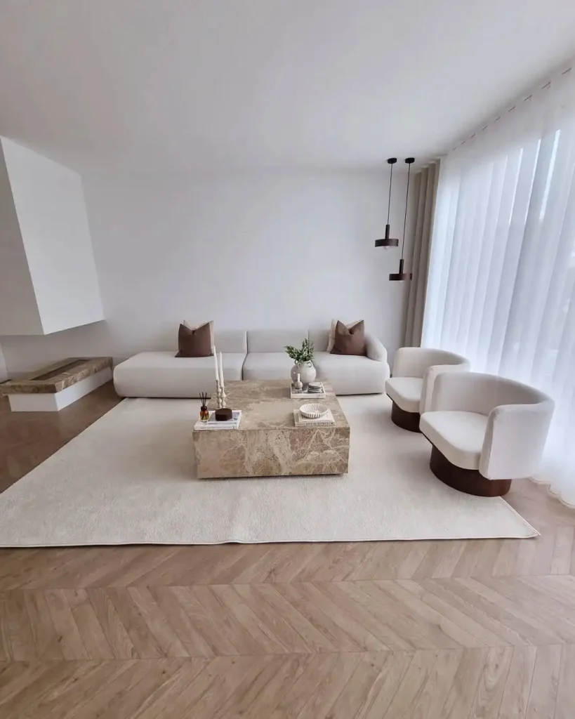این پذیرایی دقیقاً وسطِ خطهای تمیز و گرمای واقعی میایسته. فضا بازه، اما بافتها نمیذارن سرد یا خالی بشه.