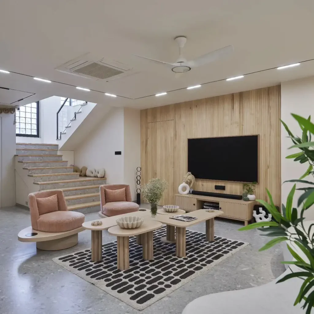 یک شیکبودن ملایم توی این فضا هست که حس زندگی واقعی هم میده. مبلمان حضور دارد، اما نرمیِ فرمها همهچی رو قابلنزدیکشدن میکنه. خطوط گرد و دکورهای کم اما دقیق، دلچسبش کرده.