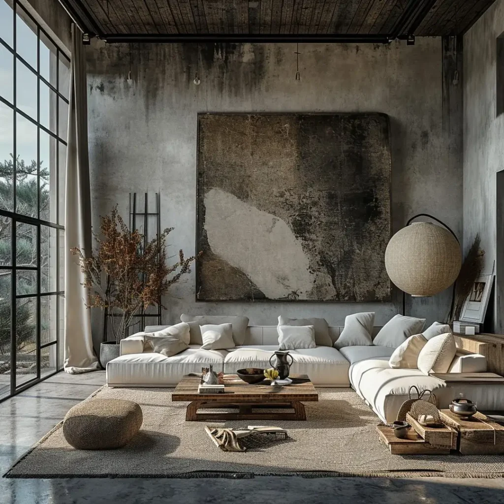 این یکی ژاپنی رو با یک لبهی جدیتر میچرخونه: سطحهای شبیه بتن و تونهای تیرهتر کنار پارچههای نرم و چوب گرم. تضادش عمدیه و خیلی خوشسلیقه دراومده.