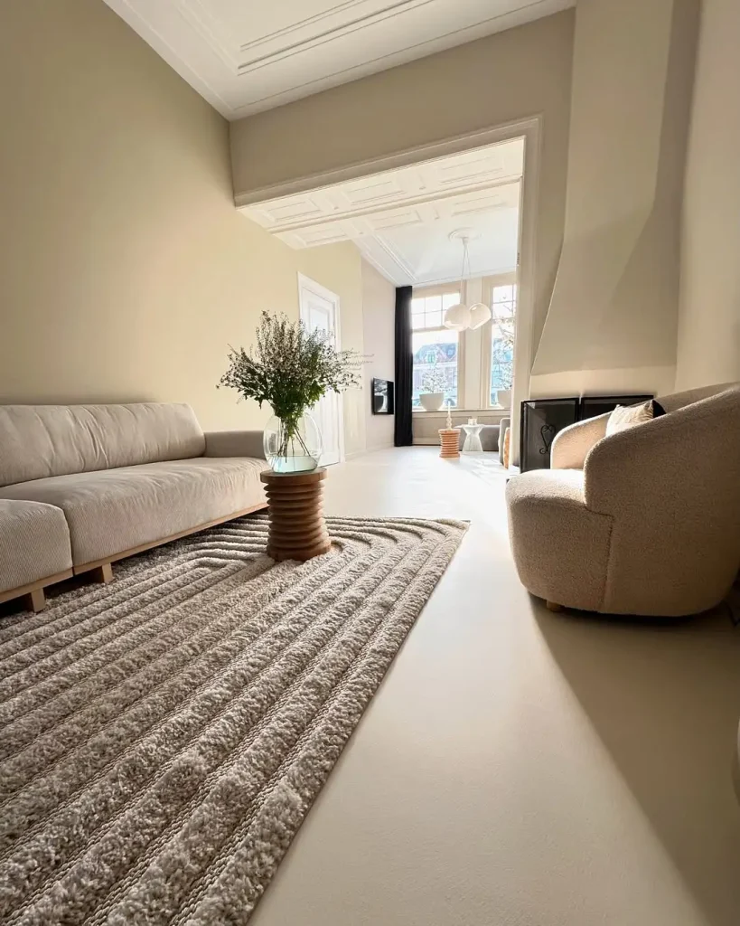 این اتاق مثل یک مکث طولانیه. دیوارهای بژ مات، نشیمن کوتاه و نور گرم و پخششده، همهچیز رو آهسته میکنه. انگار عجله توی این فضا جایی نداره.