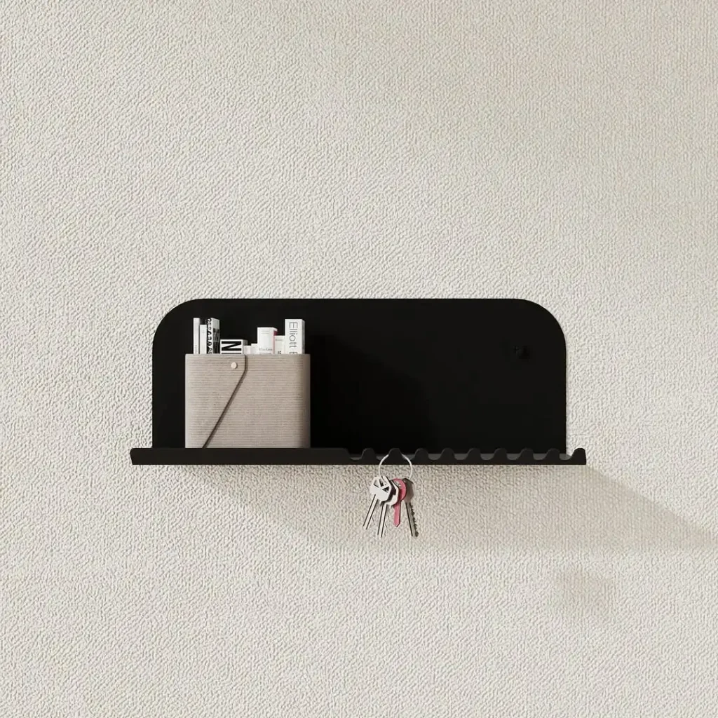 این یکی نفسِ مینیمالیسمه. مشکی مات با منحنیهای نرم، هم شلف است هم یک تکه مجسمه. لبه موجیای که کلیدها ازش آویزون میشن؟ واقعاً هوشمندانه است.