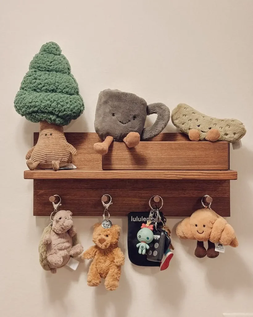 اینجا “بانمکی بچگانه” با “کاربرد بزرگسالانه” آشتی کرده. عروسکهای لبخنددار بالای کار و آن دوستهای کوچولو که از میخها آویزوناند، روتین روزانه رو تبدیل میکنه به یک لحظه کوچیکِ حالخوب.