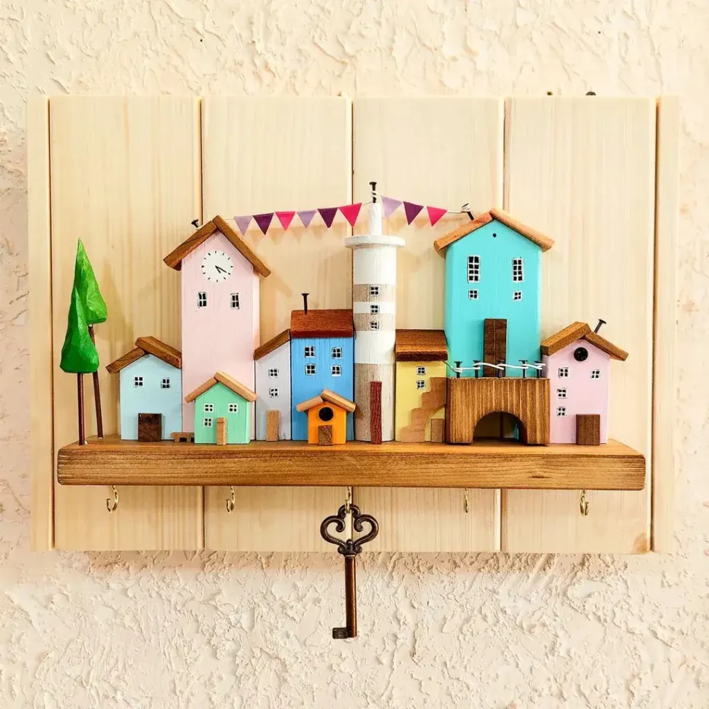 یک دهکده کوچولو روی جاکلیدی؟ چرا که نه. خانههای چوبی نقاشیشده، یک فانوس دریایی ریز، و ریسههای تزئینی… انگار کلیدها توی یک شهر ساحلی زندگی میکنن.