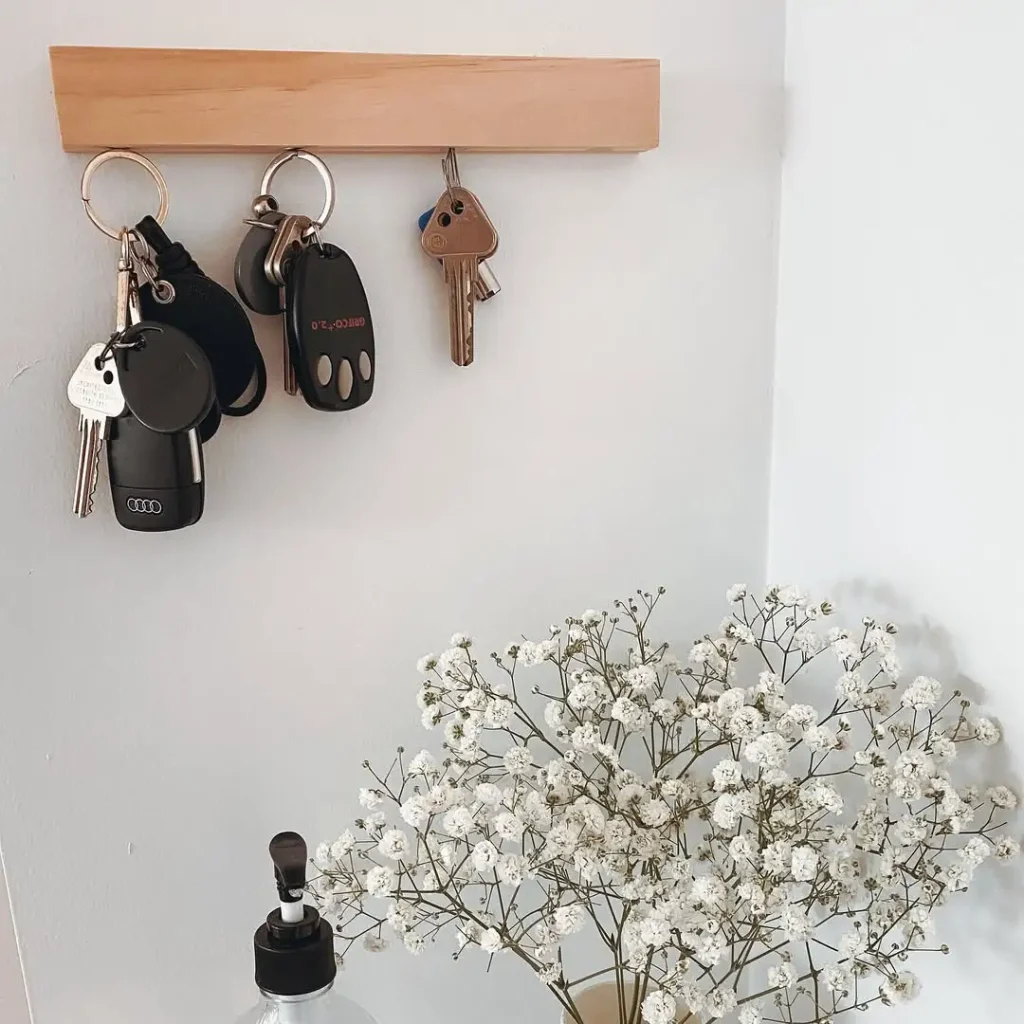 گاهی واقعاً “کمتر، بهتره”. این جاکلیدی مگنتی آنقدر تمیز و باریکه که تقریباً توی دیوار حل میشه. یک تخته چوبی ساده، بدون قلاب و شلوغی، با یک ترفند مگنتی که پشت صحنه همه کار میکنه.