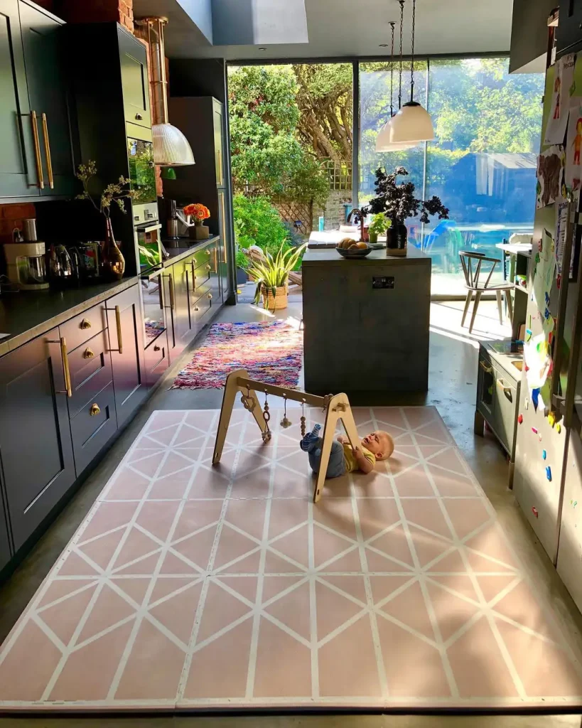 ضد لیز خوردن مهمتر از هر چیزه: یا زیرانداز ضدلغزش بگیر، یا فرشی انتخاب کن که پشتش محکم باشه.