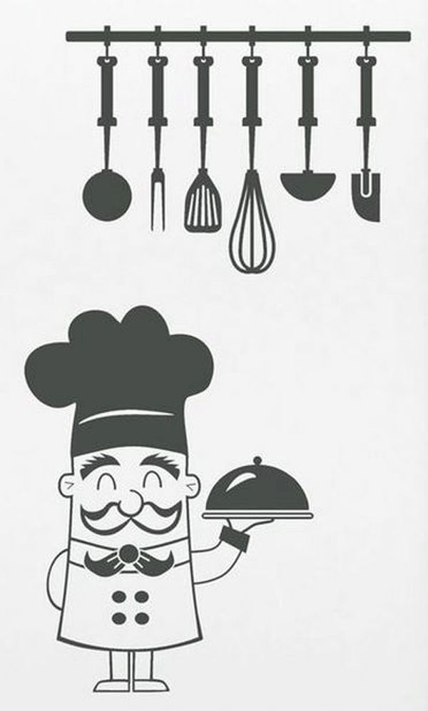 استفاده از برچسبهای دیواری با تصاویر مواد غذایی مورد علاقهتان برای ایجاد یک اتمسفر آشپزخانه حرفهای و دلپذیر.