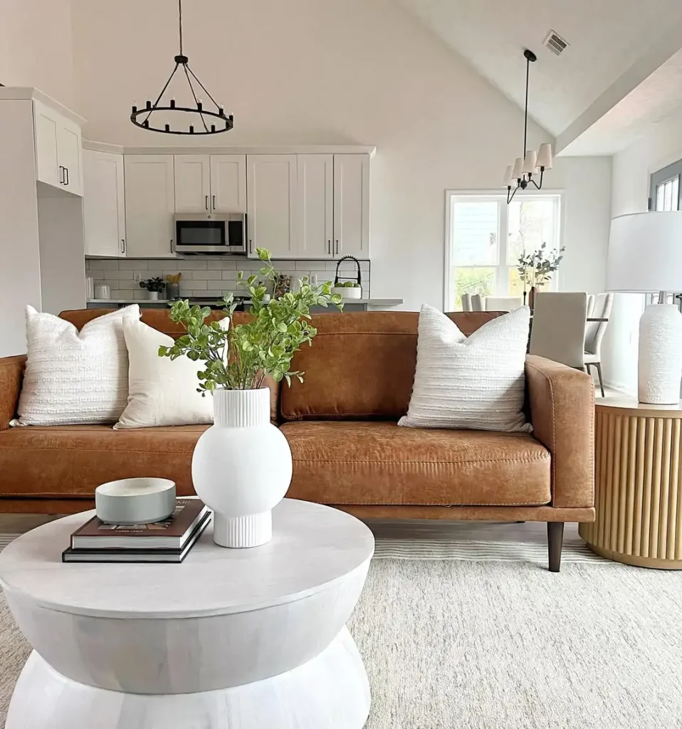 با یک فرش نرم، کوسنهای پارچهای (کتان/مخمل)، پتو بافتدار و نور گرم. این چهار تا چرم رو “انسانی” میکنن.