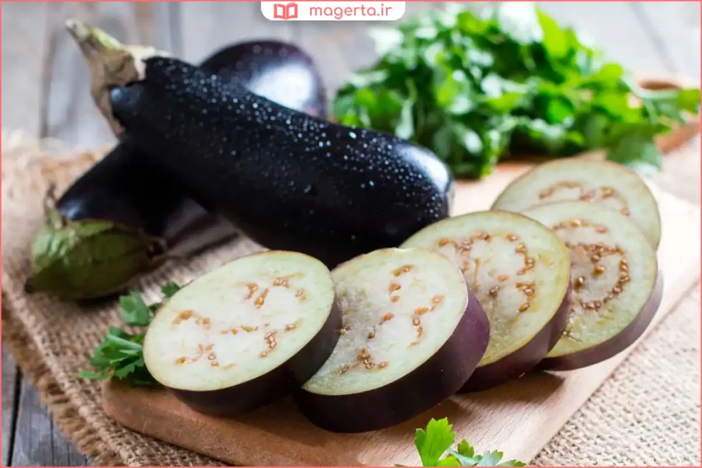 - نکته سلامتی: بادمجان باید کاملاً رسیده باشد، چون نارس آن حاوی سولانین است.