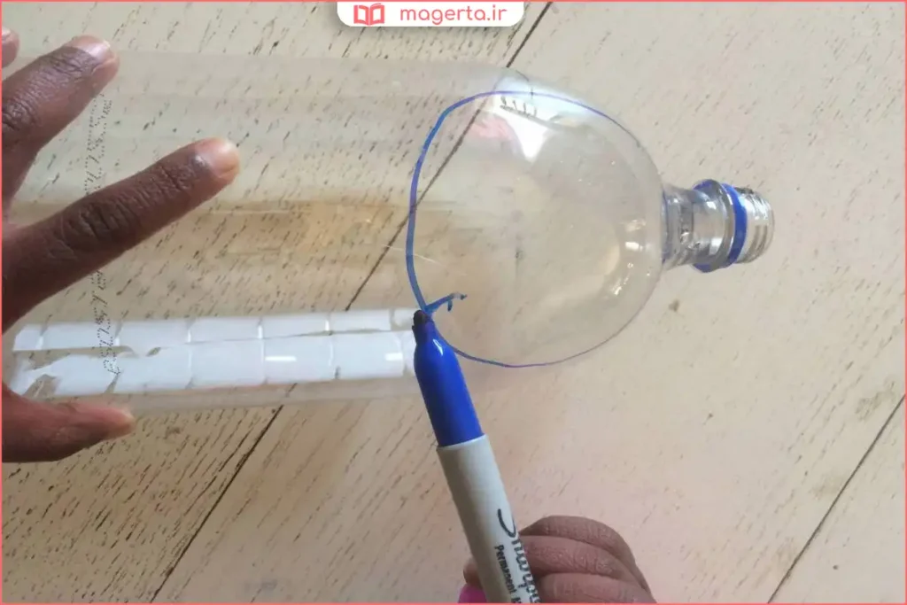 نکته ایمنی: در برش دادن بطری‌های پلاستیکی احتیاط کنید. بهتر است این کار توسط بزرگسالان یا با نظارت آن‌ها انجام شود.