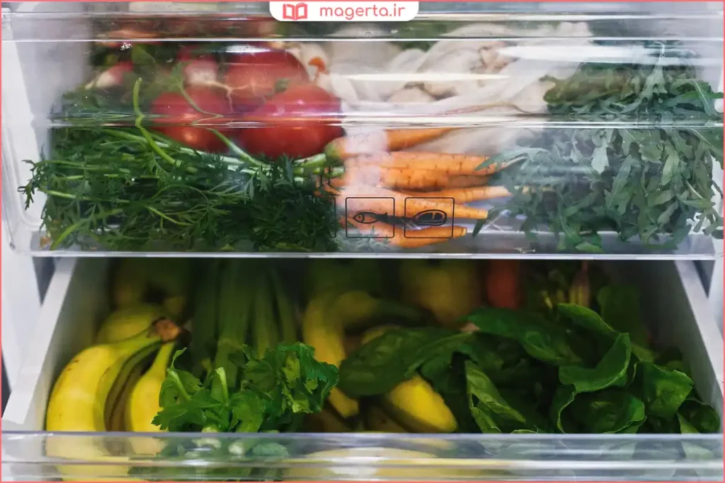 تقریباً همه یخچالهای جدید کشوهایی دارند که برای میوه و سبزی طراحی شدهاند. در راهنماهای استفاده از یخچال توضیح داده میشود که این کشوها رطوبت را بیشتر حفظ میکنند و جریان هوا در آنها کمتر است، به همین دلیل سبزیجات دیرتر خشک میشوند. برخی مدلها حتی درجه تنظیم رطوبت دارند و برای سبزیجات ریشهای مثل هویج، تنظیم روی رطوبت بالا مناسب است.