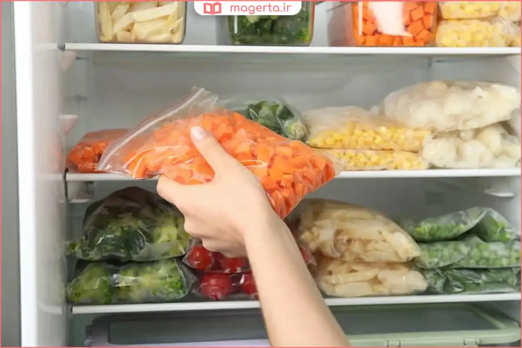 بستهبندی برای فریزر: هویجها را در کیسههای مخصوص فریزر یا ظروف دربدار به صورت هوابند بستهبندی کنید.