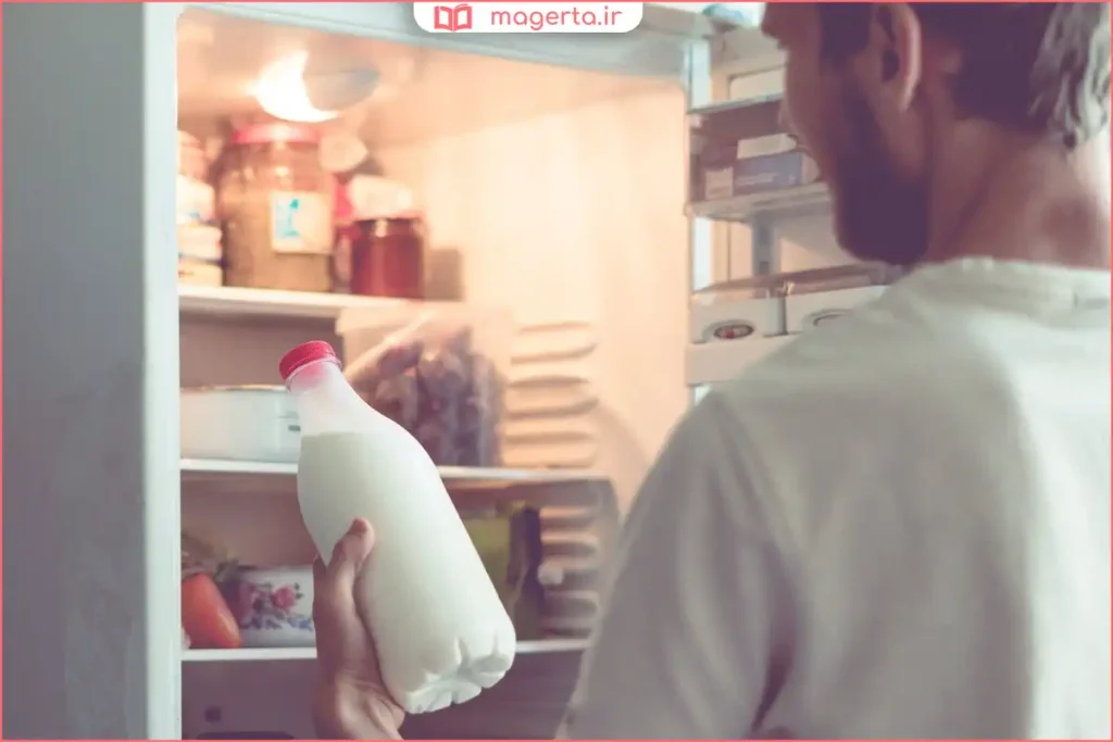 مکان مناسب در یخچال: شیر را در سردترین قسمت یخچال (معمولاً طبقات پایینی یا قفسههای عقب) و نه در در یخچال قرار دهید، زیرا دمای آنجا نوسان بیشتری دارد. دمای یخچال باید ۴ درجه سانتیگراد یا کمتر باشد.
