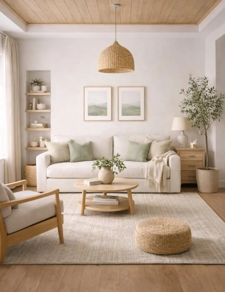 خنثی روی خنثی، اما اصلاً خستهکننده نیست. مبل روشن، چراغ آویز بافتدار و چوبهای روشن حس باز بودن میدهند و برای پذیرایی کشیده عالیاند. همه چیز نفسدار و متعادل است.