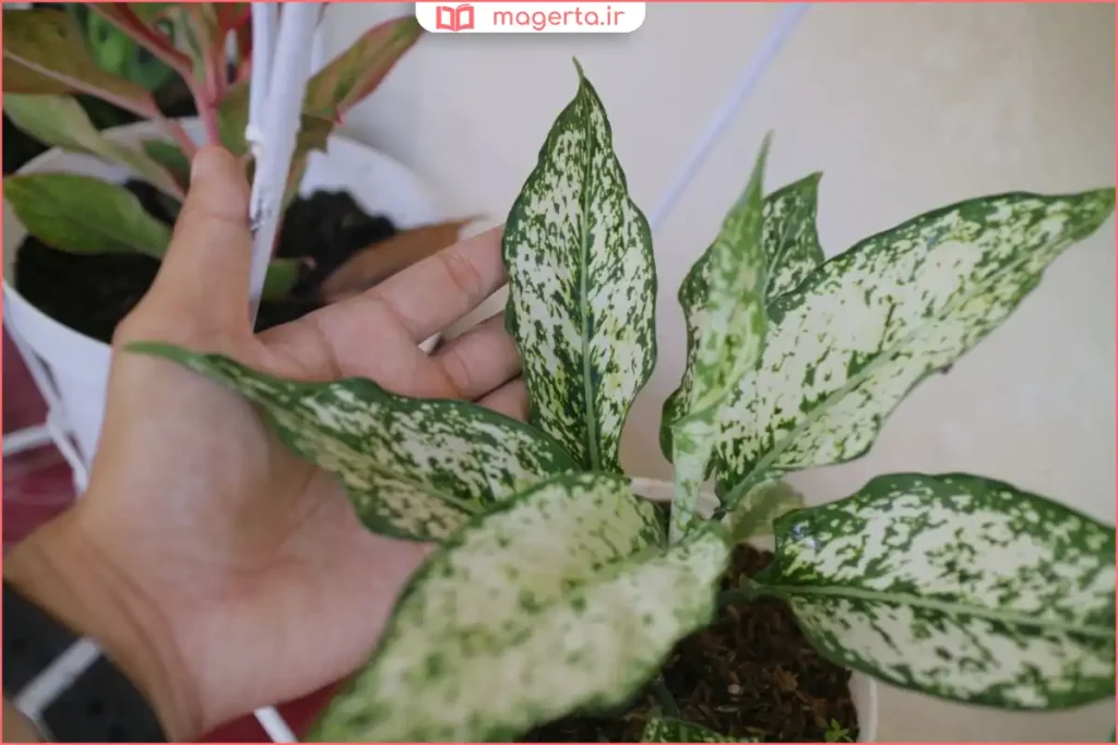 برگهای این گیاه اگر در شرایط درست باشند، سفت، براق و بدون لکه هستند. تغییر رنگ، نازک شدن، لکههای قهوهای حاشیه برگ یا زرد شدن یکباره چند برگ، معمولاً پیامی از طرف گیاه است که میگوید «یا نور من درست نیست، یا آبیاری و خاک مشکل دارد، یا از سرما و خشکی رنج میکشم». بنابراین شناخت این علائم، کلید اصلی نگهداری موفق آگلونما کاهویی است.