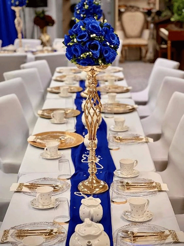 نورپردازی مناسب، میتواند جادوی ویژهای به دکوراسیون آبی درباری ببخشد. استفاده از لوسترهای کریستالی در مرکز پذیرایی، نور را به زیبایی منعکس میکند و حس درخشندگی به فضا میدهد. همچنین، به کار بردن چراغهای دیواری با حبابهای طلایی یا نقرهای، نوری ملایم و دلنشین در فضا ایجاد میکند.