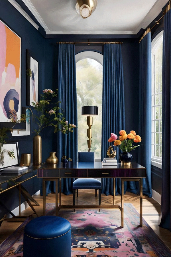 این رنگ برای دیوارهای پذیرایی یا اتاق کار بسیار مناسب است. اما اگر فضای خانهی شما کوچک است، بهتر است تنها یک دیوار را به رنگ آبی درباری دربیاورید و سایر دیوارها را با رنگهای کرم، طلایی یا نقرهای ملایم رنگآمیزی کنید.