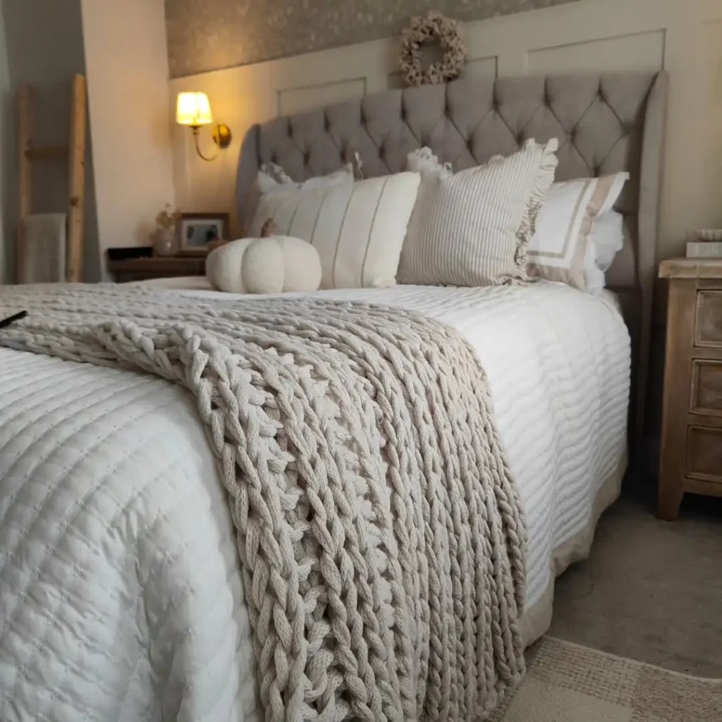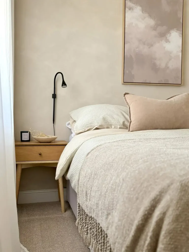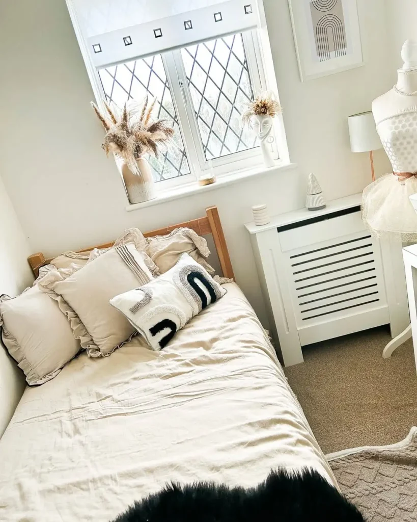 این اتاق ثابت میکنه در اتاق خواب کوچیک، بافت همهچیزه. نرم، آروم و دقیقاً به اندازه دنج.
