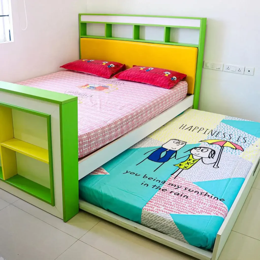 به نظمدهی فکر کن: بعضی مدلها علاوه بر تخت کشویی، کشو یا فضای مخفی برای ملحفه و اسباببازی هم دارن. این یعنی نصف اتاق نجات پیدا میکنه.