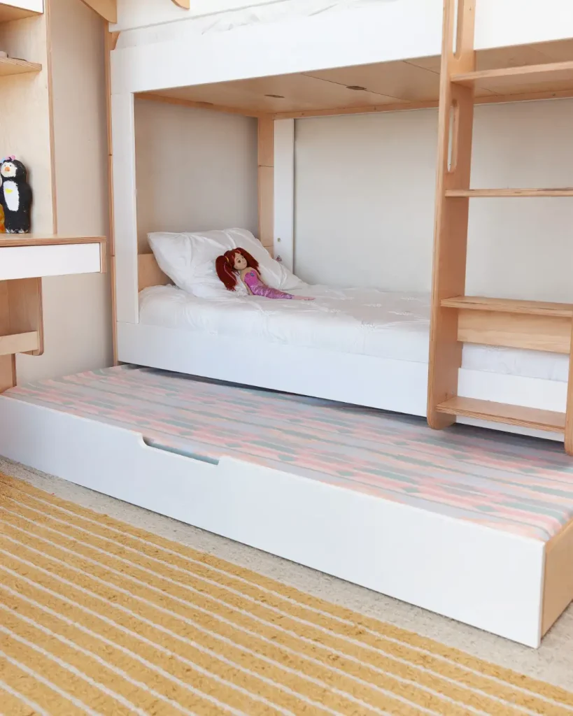 از اون چیزهایی که واقعاً حال میده اینه که تخت پایینی چقدر تمیز و بیدردسر میره زیر تخت. مرتب، جمعوجور، و هر وقت لازم شد آماده استفاده. ترکیب خوبی از سادگی و طراحی هوشمندانه که هیچوقت هم از مد نمیافته.